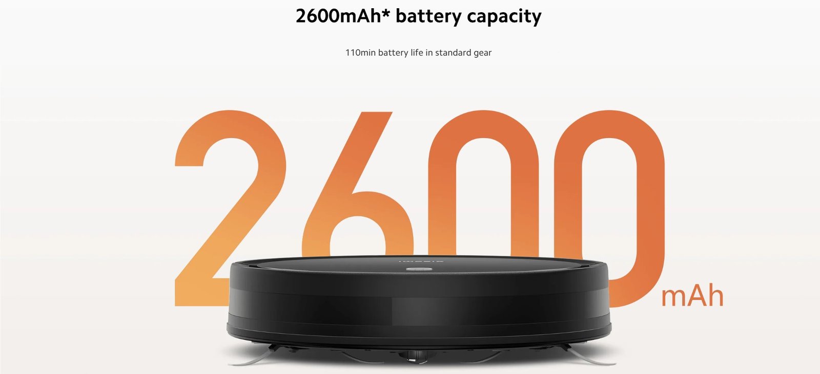 - Powerful Battery: The robot uses a 2500mAh (rated) / 2600mAh (nominal) battery for longer cleaning time.